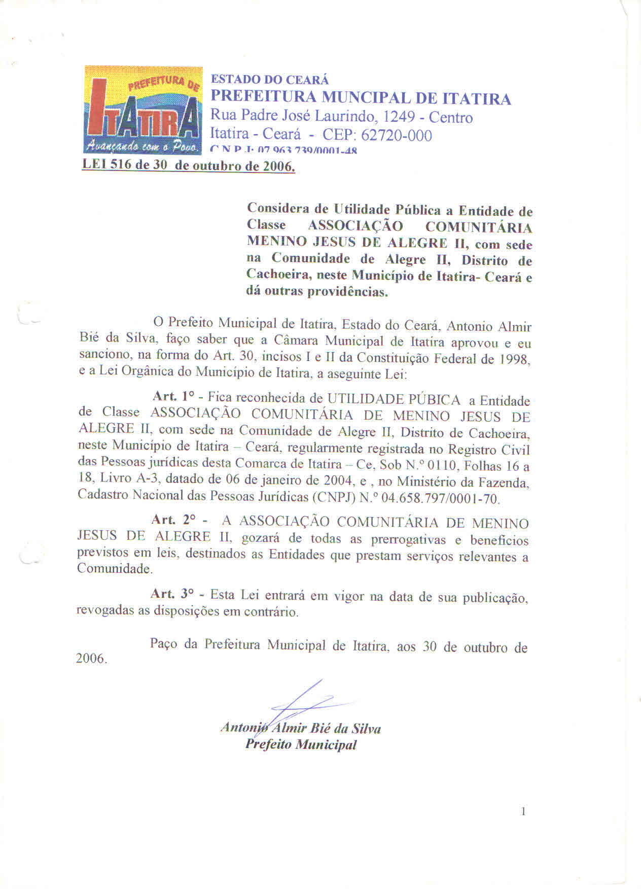 ASSOCIAÇÃO COMUNITÁRIA MENINO JESUS DE ALEGRE II ITATIRA CEARÁ 10 ANOS UMA HISTÓRIA DE CONQUISTAS