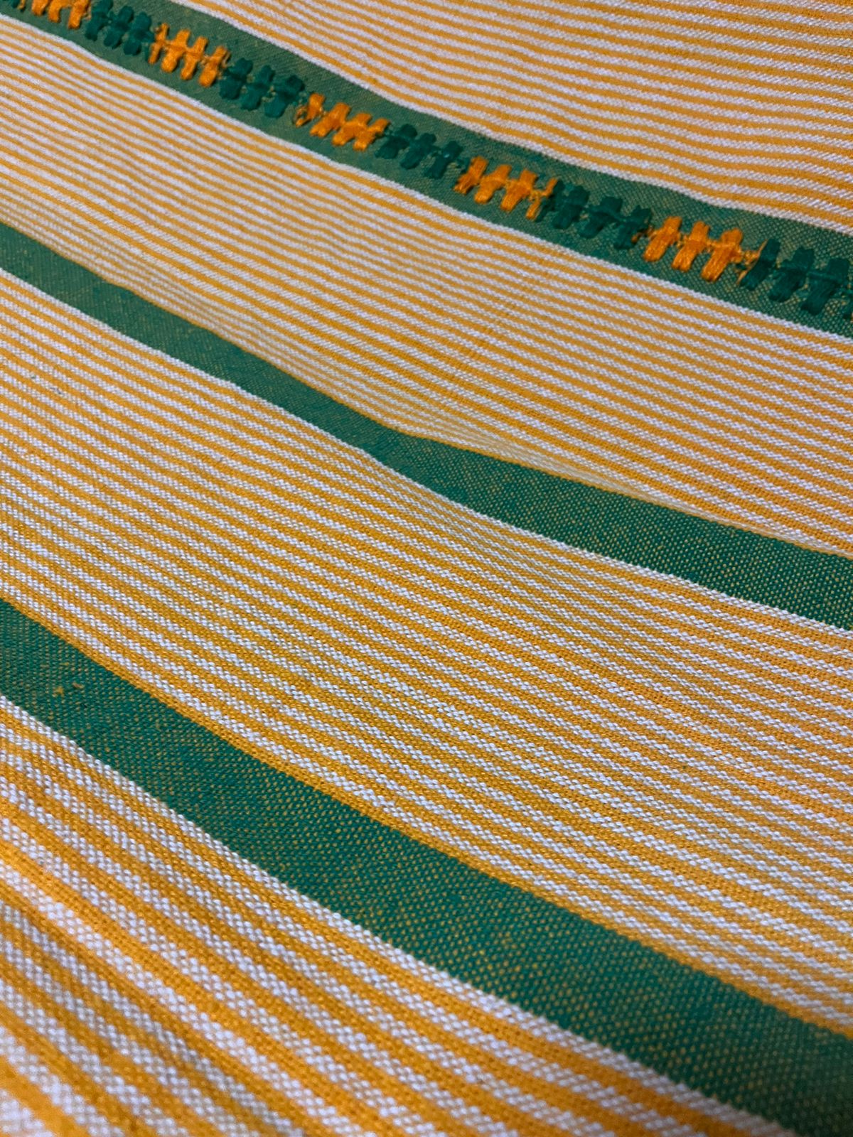 No quintal, repousam as partes do tear que tanto contribuíram para sua arte: liço, queixa, braço, orgo, pente, rasteira, cartel, canela e lançadeira. Com carinho e espontaneidade, Dinha brinca, afirmando que as madeiras de Ipê e Peroba Rosa que as compõem são mais antigas que suas próprias lembranças.
