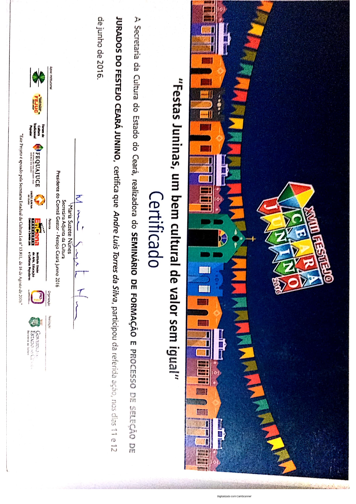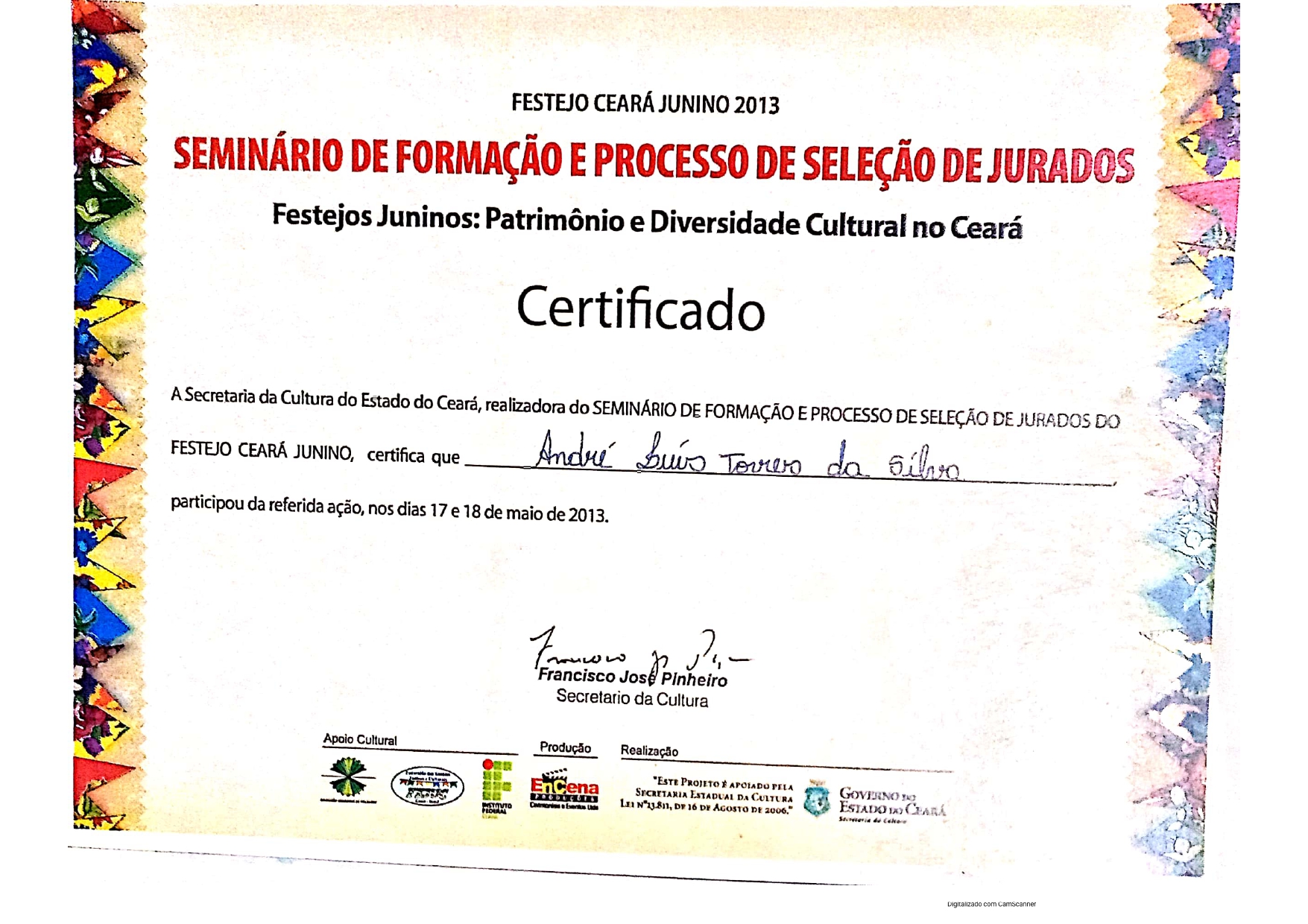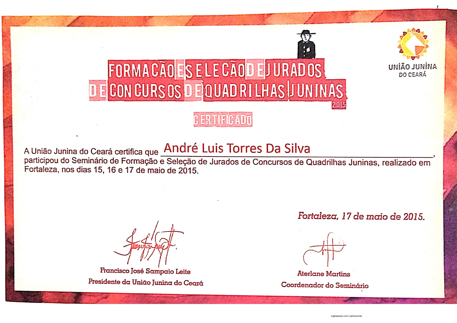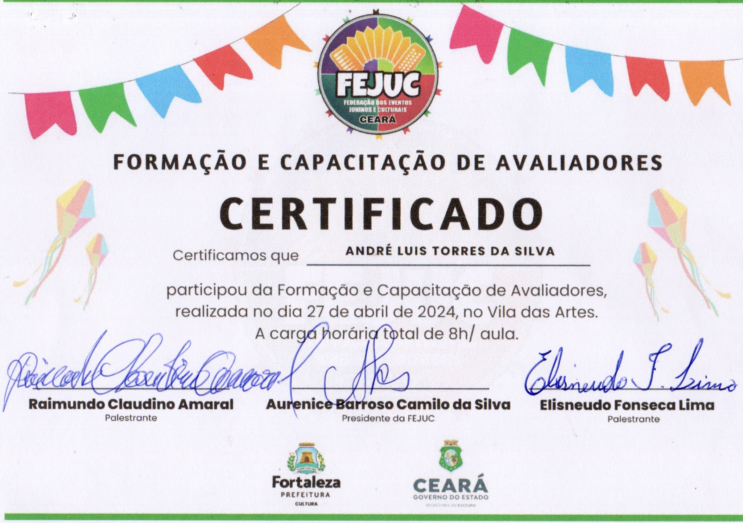 Meu nome é André Luis Torres da Silva e minha vida é marcada pela arte popular. Desde 1995, caminho no universo das quadrilhas juninas, primeiro como brincante, depois como coreógrafo, ajudando a transformar sonhos em dança, cor e emoção. Em 2004, abracei também a escrita dos casamentos matutos, levando humor e tradição para um dos momentos mais queridos do nosso São João.Minha história se mistura com a do Festejo Ceará Junino: participei como jurado desde o primeiro ano, permaneci até 2001 e, depois de uma pausa, retornei em 2013 para continuar contribuindo com meu olhar apaixonado e cuidadoso na avaliação das quadrilhas que espalham alegria pelo nosso estado.
