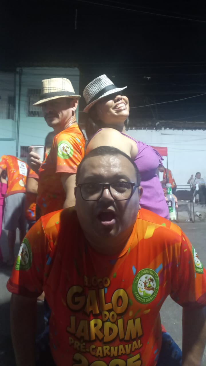 Mas minha atuação não se limita ao ciclo junino. Tenho também uma ligação profunda com o carnaval de Fortaleza, especialmente com o Bloco de Pré-Carnaval Galo do Jardim América, manifestação que me enche de orgulho. O Galo é mais que um bloco: é encontro de gerações, é celebração de bairro que se transforma em cidade, é a prova de que a festa, a música e a dança podem unir e fortalecer comunidades inteiras.