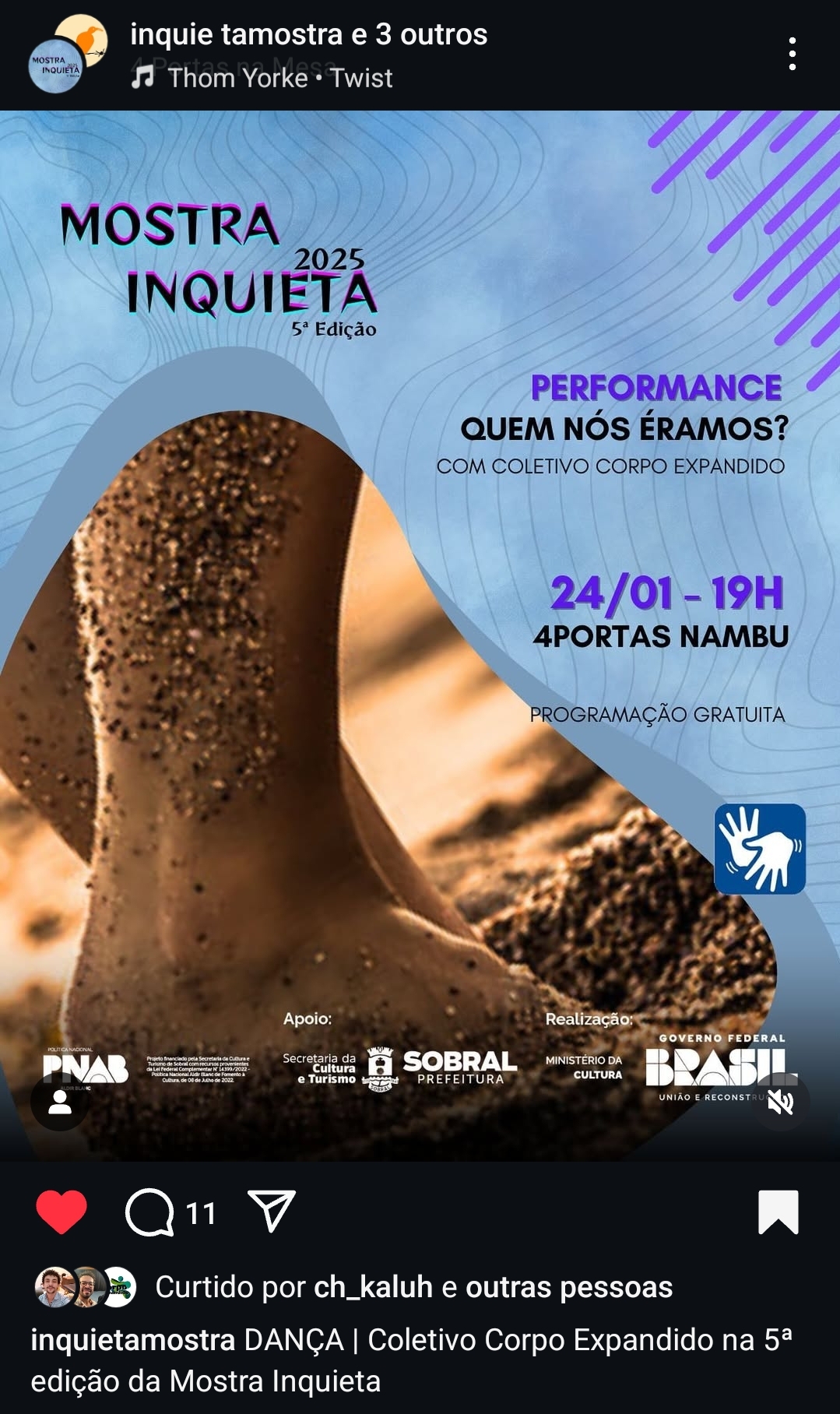 O Coletivo Corpo Expandido (CCE) é uma força criativa emergente no cenário artístico de Sobral, estabelecido em 2024. Este coletivo tem como foco promover diálogos entre a dança contemporânea e a performance, gerando trocas enriquecedoras a respeito do estado de presença cênico do performer e do corpo que dança. Encontros semanais conduzidos por Ângelo Mouta (artista da performance e da dança, professor de Yoga e psicoterapeuta) e por Souza Frota (artista da dança, atuante na cena sobrelense há diversos anos).