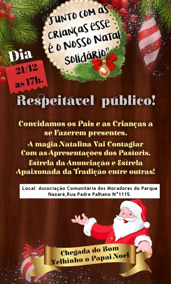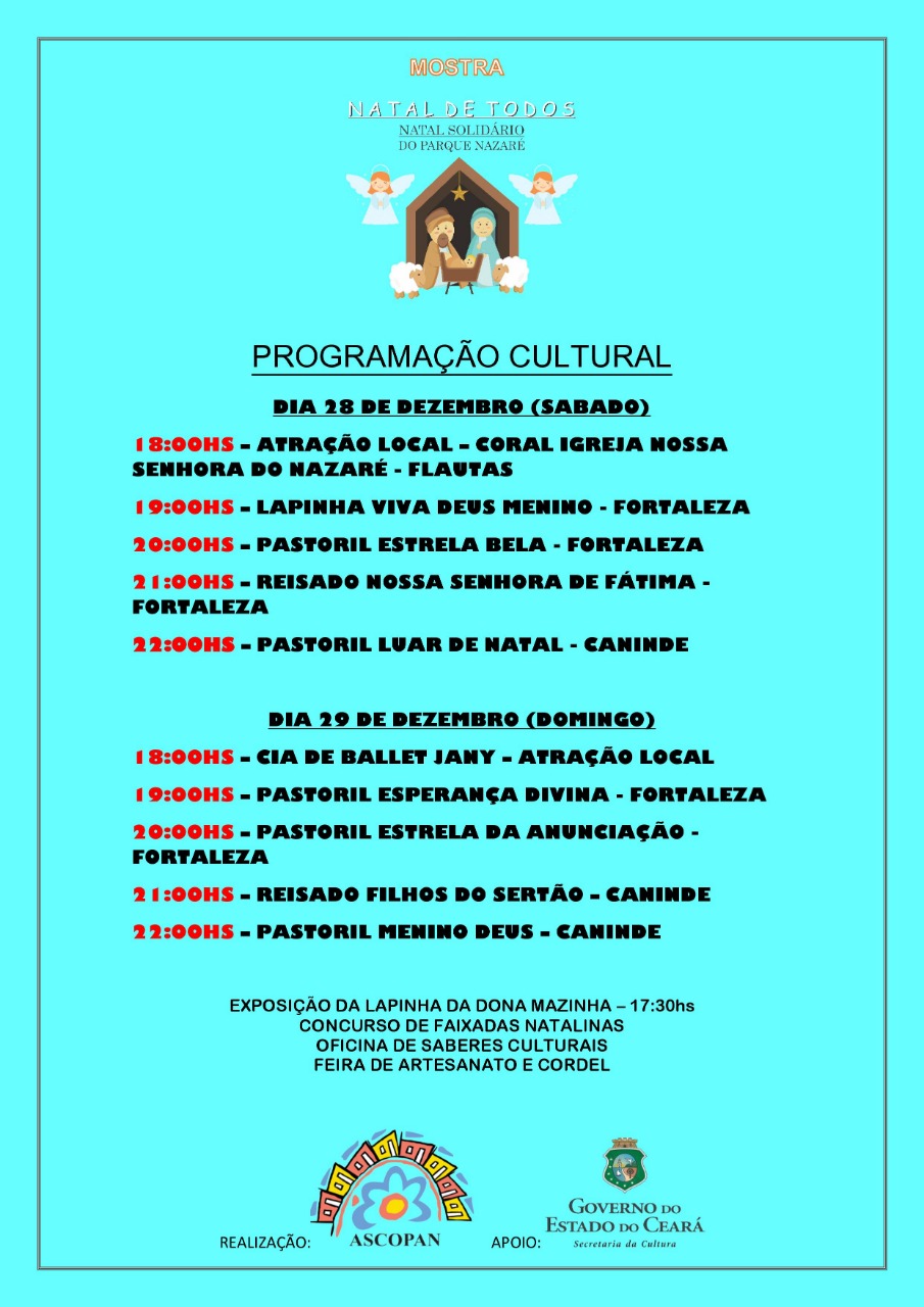 a mostra natalina acontece anualmente com a participação de grupos de tradição natalina de fortaleza e do interior do estado, grupos parafolcloricos e artistas regionais, na rua padre palhano, em frente a sede da associação comunitaria dos moradores do parque nazaré.Vídeos