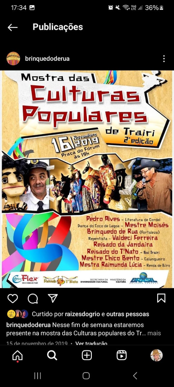 Entre 2017 e 2018, integra o Coletivo Raízes do Griô. Fundador do Coletivo Brinquedo de Rua (dez 2015), do qual é Mestre, que desfila desde 2017 no carnaval de Fortaleza e atua como um grupo cultural que trabalha as Tecnologias Sociais do Encontro, através das manifestações do Coco, da Ciranda e do Maracatu Baque Solto, dentre outras da cultura popular nordestina, desenvolvendo processos formativos baseados na Educação Popular, sendo reconhecido como Ponto de Cultura, a partir de 2020.