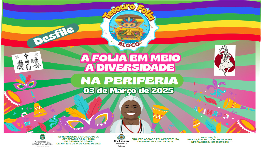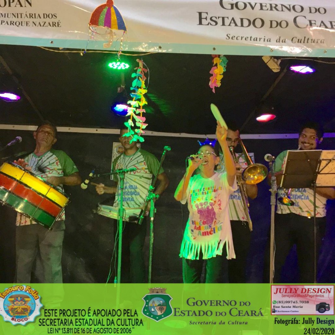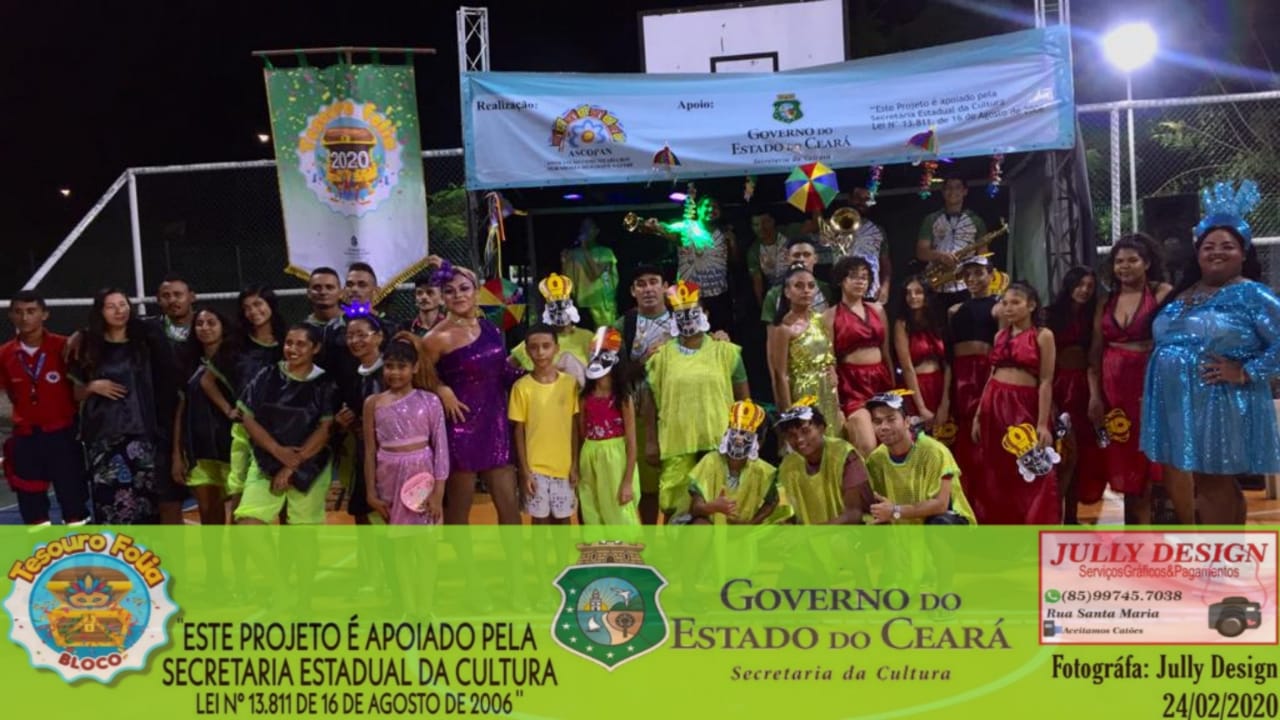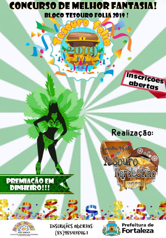 A AGREMIAÇÃO CARNAVALESCA BLOCO TESOURO FOLIA, NASCEU EM 2011, COM ATIVIDADE DE INTEGRAÇÃO DA COMUNIDADE DO PARQUE NAZARÉ NO BAIRRO SIQUEIRA 2, TENDO COMO SEU PRINCIPAL OBJETIVO CRIAR MEIOS DE APRECIAÇÃO E CONVIVIO SOCIAL PARA A POPULAÇÃO E BAIRROS VIZINHOS, TENDO CONHECIMENTO DAS PRATICAS E SABERES DAS DIVERSAS FOLIAS E FOLGUEDOS DO CARNAVAL CEARENSE, TENDO SEU PRIMEIRO DESFILE ACONTECIDO NA RUA GOMES SAMPAIO NO ANO DE 2011, AGREGANDO CERCA DE 100 BRINCANTES, DEVIDAMENTE FANTASIADOS COM O ENREDO FALANDO SOBRE A PAZ NO CARNAVAL, ATUALMENTE NOSSA AGREMIAÇÃO SI CONSOLIDA E A CADA ANO VAMOS CRIANDO NOVOS ENREDOS QUE VISAM ESTIMULAR A MENTE CRITICA DOS NOSSOS BRINCANTES E APRECIADORES, TORNADO A CULTURA CARNAVALESCA PRESENTE EM NOSSA HUMILDE PERIFERIA, DANDO ENTRETENIMENTO PARA O PUBLICO ADULTO, IDOSO, CRIANÇAS E ADOLESCENTES.