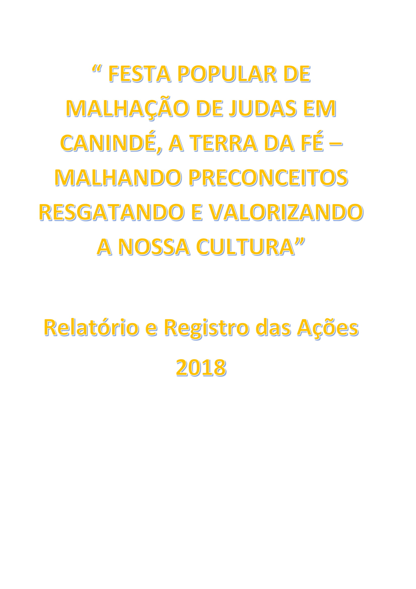 A FESTA POPULAR DE MALHAÇÃO DO JUDAS EM CANINDÉ, A TERRA DA FÉ - MALHANDO O PRECONCEITO, RESGATANDO E VALORIZANDO A NOSSA CULTURA é um festejo cultural cujo objeto principal é promover difusão e valorização das manifestações do período pascal do município de Canindé. Já em sua segunda edição, propõe ações de fomento e valorização da diversidade das manifestações artístico-culturais relativas ao período e ciclo das tradições populares da Semana Santa, dinamizando espaços culturais do município e dando oportunidade aos grupos de tradições populares (Reisados de Caretas, encenação de Paixão de Cristo, malhação de Judas) mostrarem seus trabalhos artísticos, dotes e criatividade em um evento que possibilita a circulação das tradições populares.