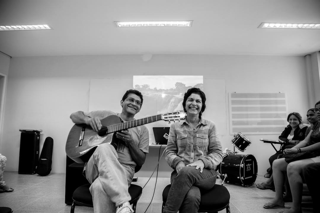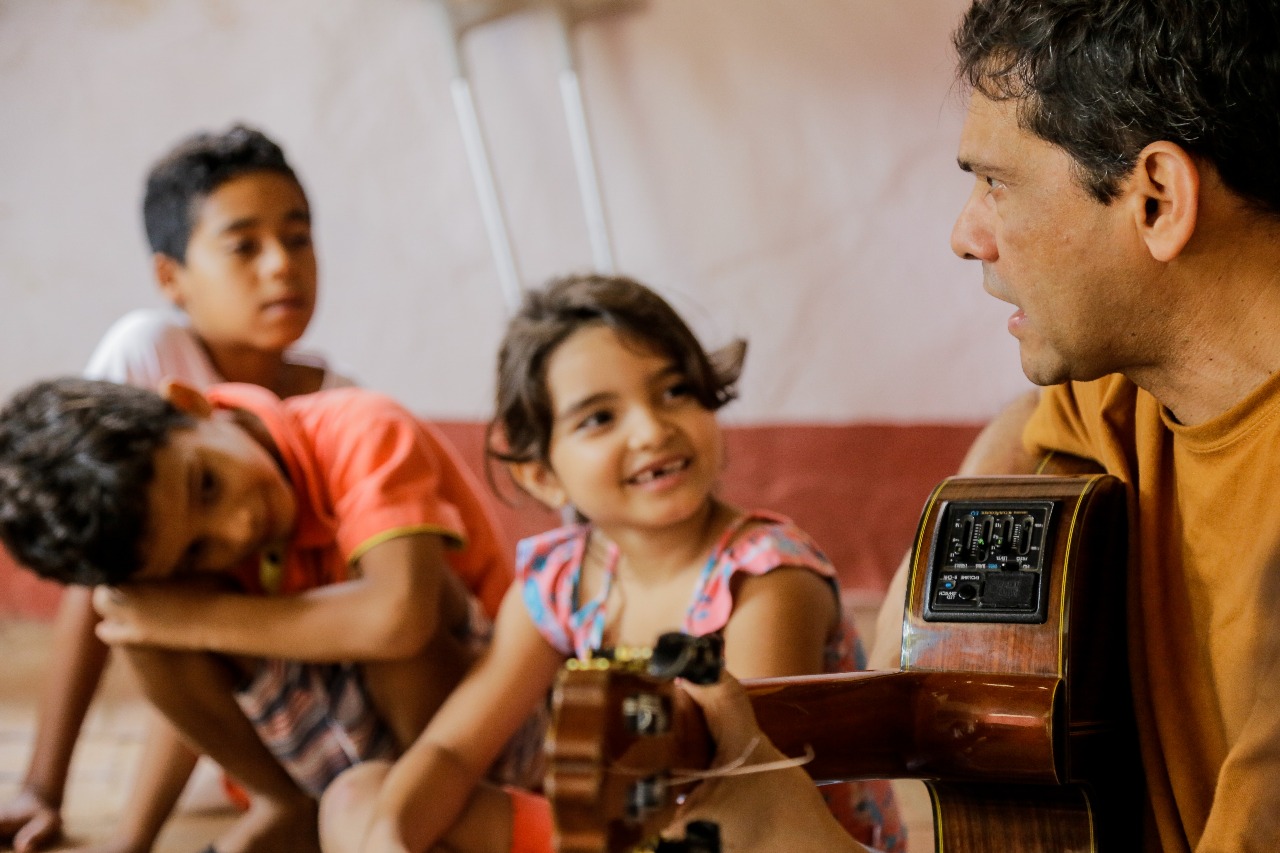 Rosiane canta com as crianças da Casa Grande