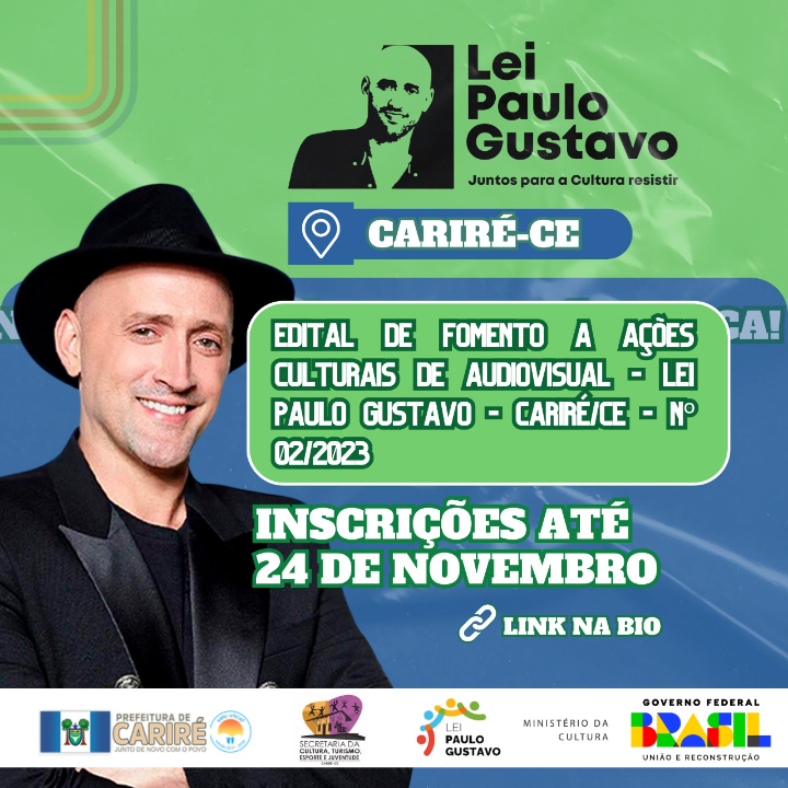 EDITAL DE FOMENTO A AÇÕES CULTURAIS DE AUDIOVISUAL - LEI PAULO GUSTAVO - CARIRÉ/CE - Nº 02/2023