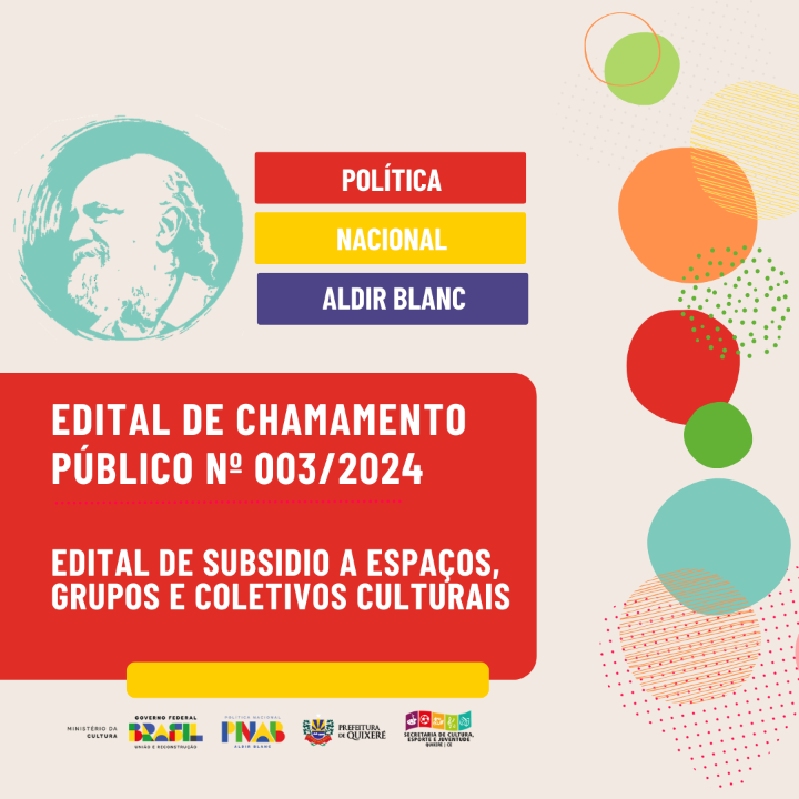 EDITAL DE CHAMAMENTO PÚBLICO Nº 03/2024 - EDITAL DE SUBSIDIO A ESPAÇOS, GRUPOS E COLETIVOS CULTURAIS COM OU SEM CONSTITUIÇÃO JURÍDICA COM RECURSOS DA POLÍTICA NACIONAL ALDIR BLANC DE FOMENTO À CULTURA - PNAB (LEI Nº 14.399/2022)
